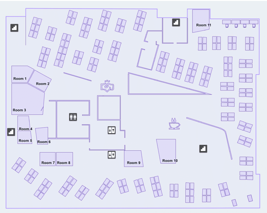 - Use ‘artistic licence’ to shrink spaces that are not ‘bookable’, such as long connecting corridors. This will help you scale up your floor plans without losing relevant information.